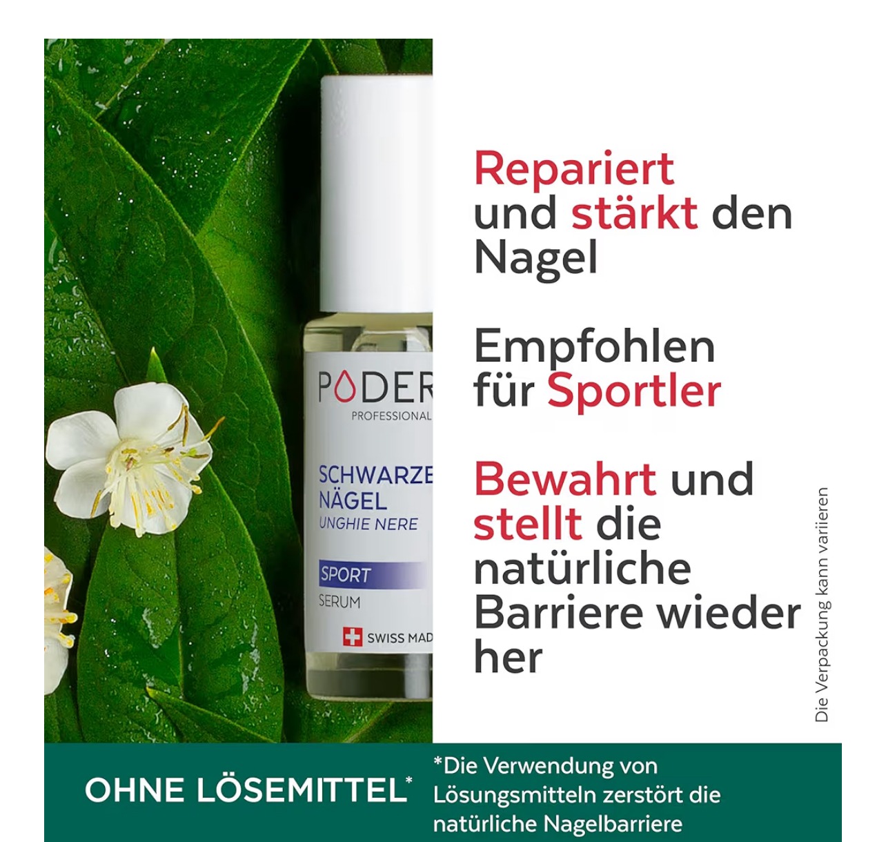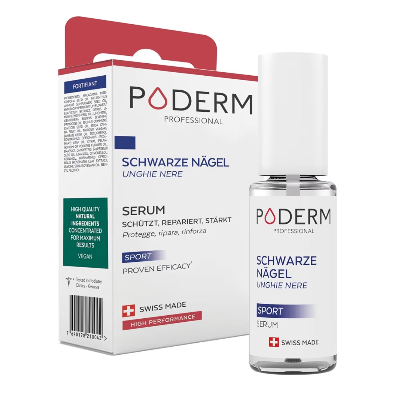 Entdecke das hochwirksame PODERM Schwarze Nägel Serum, entwickelt für Sportler und alle, die unter dunklen, verletzten oder verfärbten Nägeln leiden – zum Beispiel durch Druckstellen, Blutergüsse (Hämatome), Mikrotraumata oder enge Schuhe.
