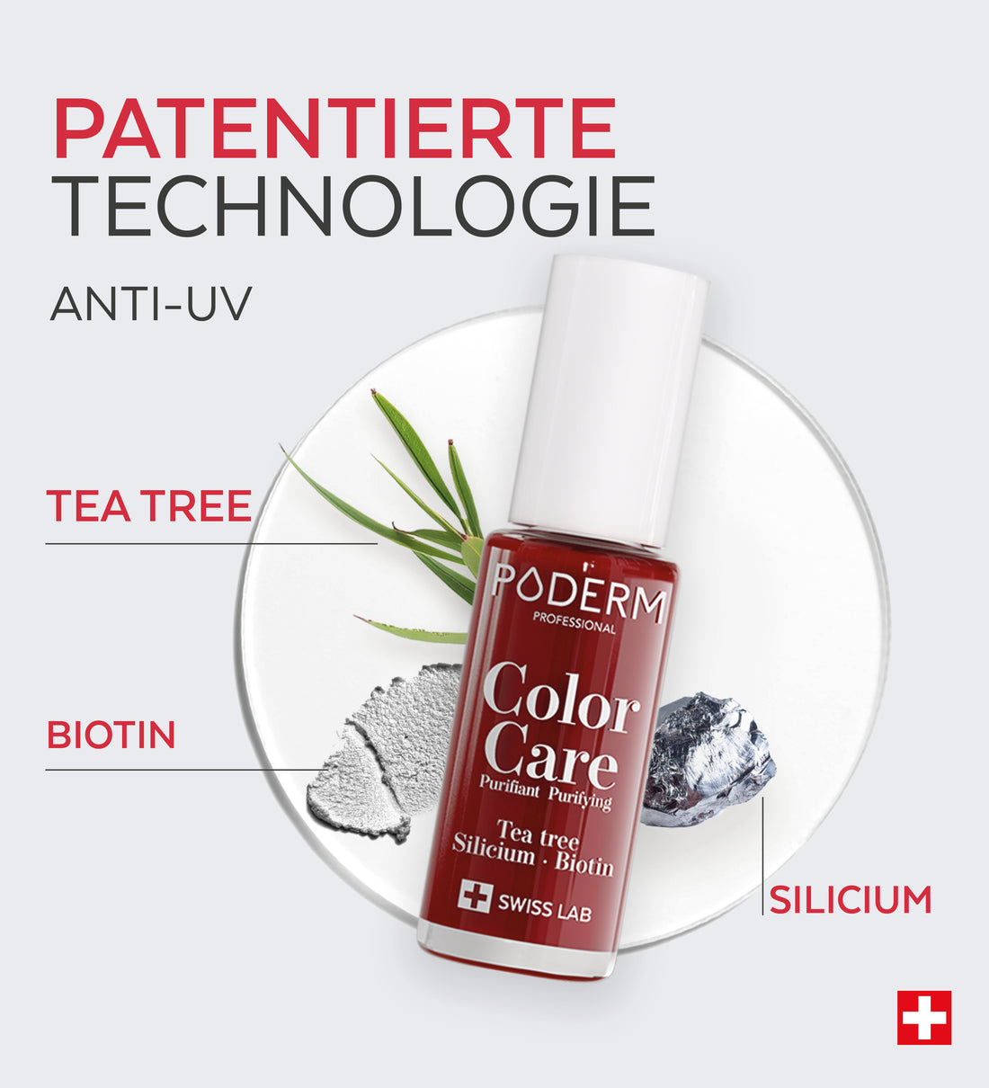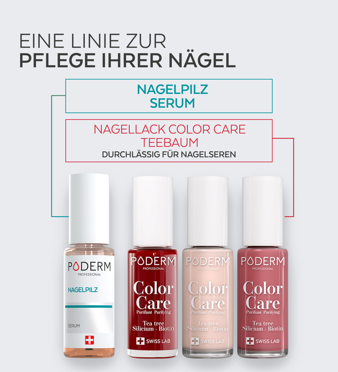 Dank der atmungsaktiven Formulierung lässt sich der Color Care Nagellack Allurarot ideal mit dem PODERM® Nagelpilz-Serum kombinieren. So können optische Makel zuverlässig kaschiert werden, während das Serum weiterhin Teil der täglichen Nagelpflege bleibt.