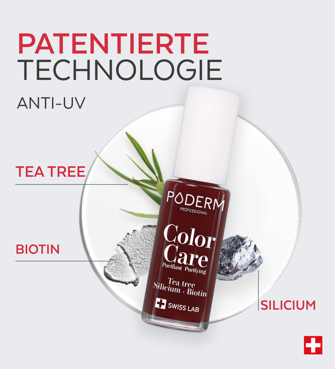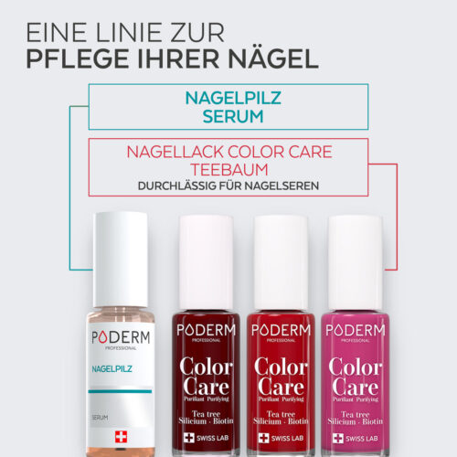 Dank der atmungsaktiven Formulierung lässt sich der Color Care Nagellack Dunkelrot ideal mit dem PODERM® Nagelpilz-Serum kombinieren. So können optische Makel zuverlässig kaschiert werden, während das Serum weiterhin Teil der täglichen Nagelpflege bleibt.